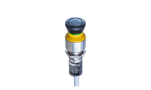 Impact switch with large actuator surface for fast switching in hazardous areas.